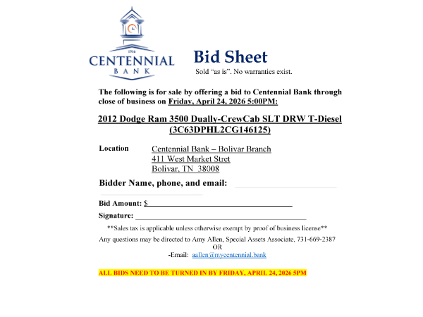 For additional details or to inquire about a specific vehicle, please contact our Special Assets Department at (731) 669-2387.